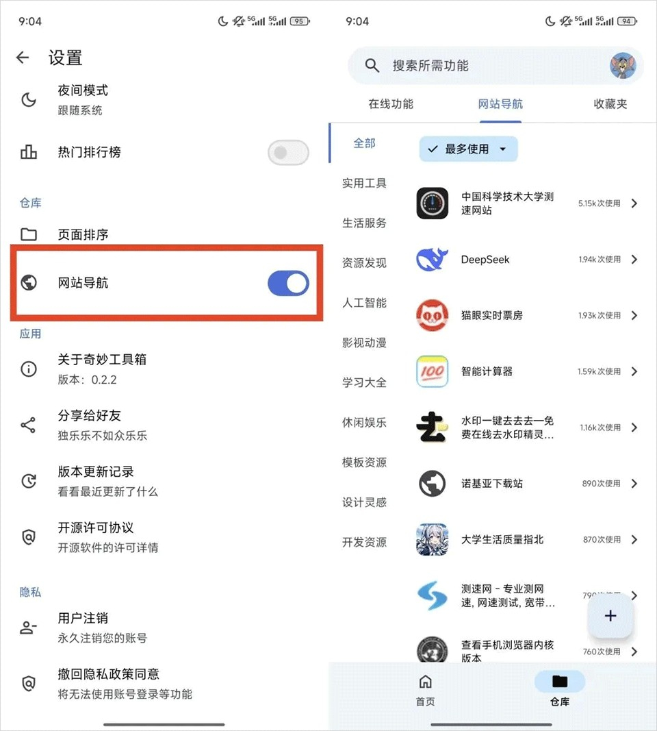 可以去设置中打开网站导航功能,这样大家就能共享网站啦,非常实用!