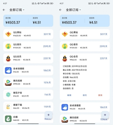 这个功能可以帮你记录您所有会员订阅,非常方便,看图便知!