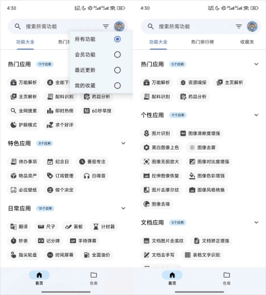 • 全能办公:PDF/图片/文档处理全家桶,图像增强(去雾/上色/无损放大/摩尔纹消除)