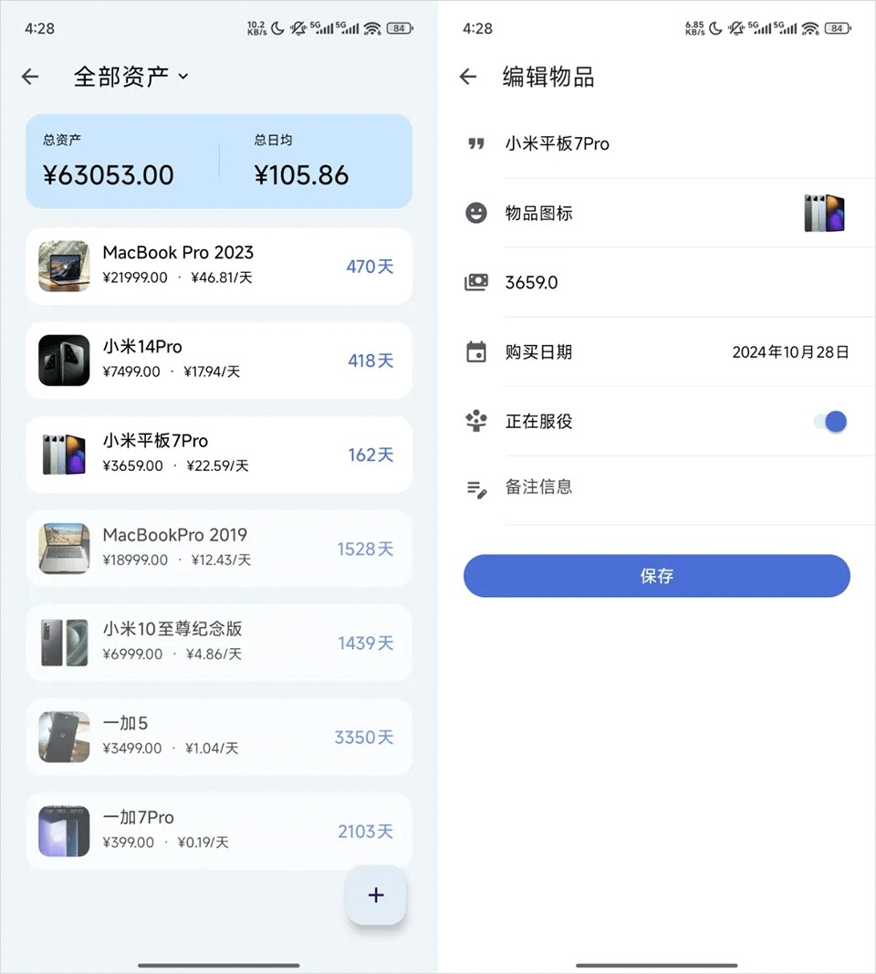 可以记录您的所有物品资产,计算日均使用成本等,支持设置图片,真可谓太方便了!