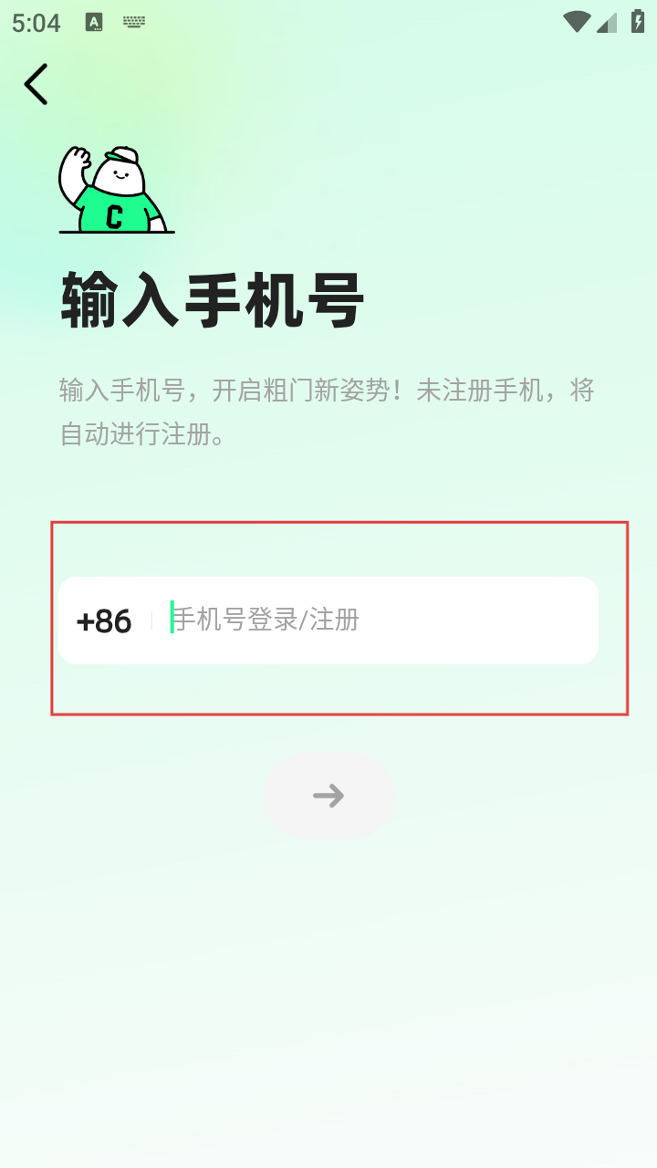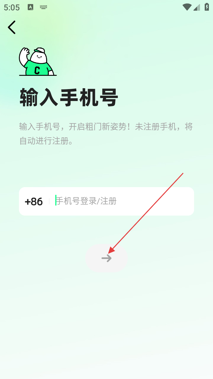 4、填完手机号,点击箭头按钮,进入下一步,完成注册登录。