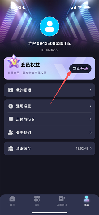 2、进入个人中心页面后,点击“立即开通”按钮,即可进入会员权益解锁界面。