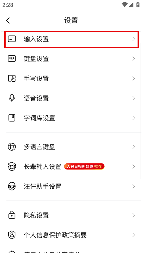 想要使用快捷键的用户,需要在设置中的输入设置里找到并点击“自定义短语”的功能选项,方可进行设置。