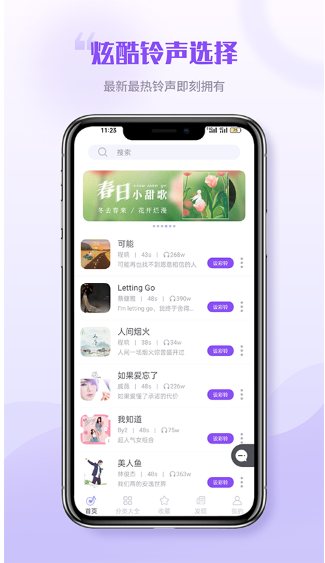 2、不怕麻烦,所有图标都重新设计,就为了给你全新的视觉感受;曲库特别全,只要是你能想到的,在好铃声里都能找得到。