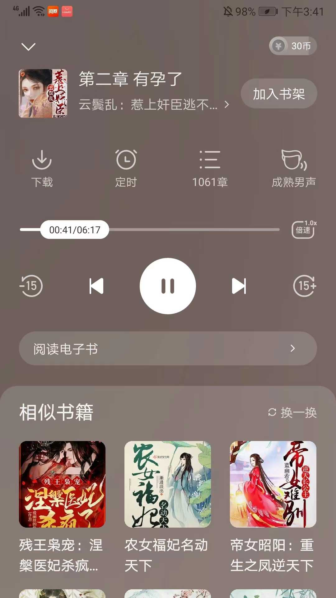 7.如果看累了的话,我们还可以使用听书模式来感受不一样的体验