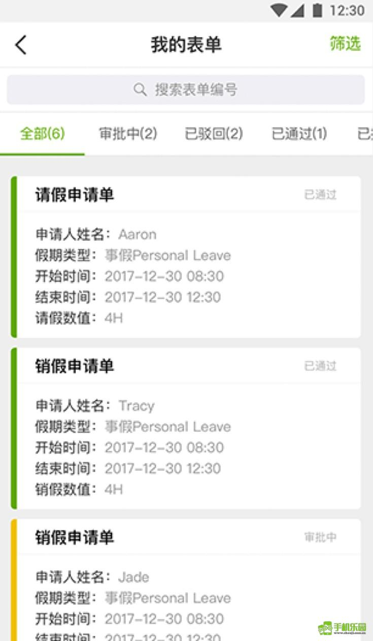 3.表单申请:10秒钟搞定请假、加班、出差申请。