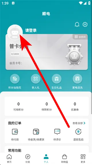 1、打开顺电应用,点击底部导航栏的“个人”选项,即可进入个人中心页面。