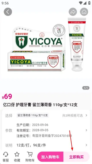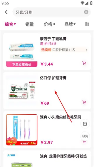 4、在牙膏和牙刷的商品列表页面,挑选具体的商品,进入该商品的详情页面。