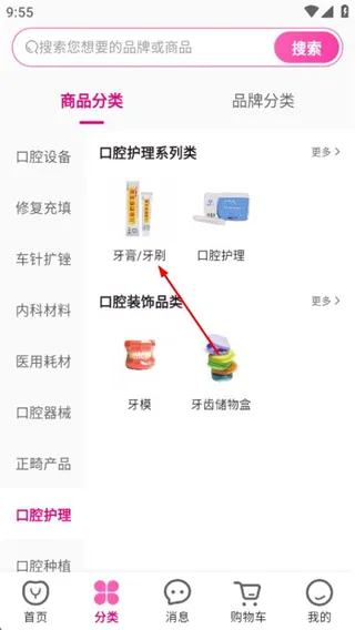 2、在分类页面,选择口腔护理分类,进入口腔护理系列类页面。