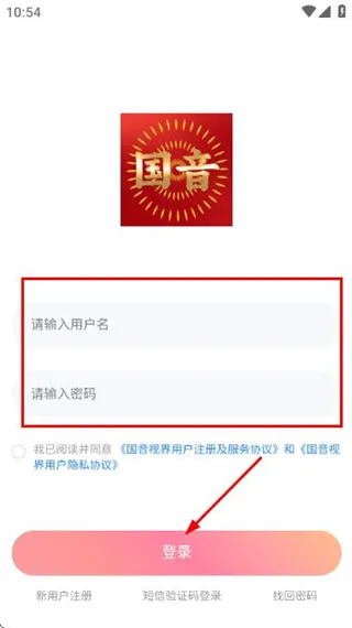 2、在个人页面点击顶部的登录注册按钮,即可进入国音视界的登录页面。
