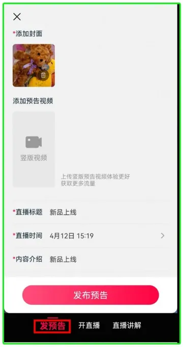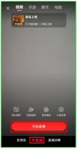 到达预告直播时间后进入快捷入口在【开直播】中调整直播画面后点击【开始直播】