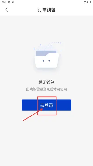 3、进入订单钱包页面后,点击“去登录”按钮,即可跳转至登录界面。