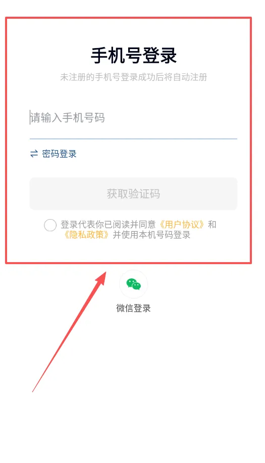 1、首先打开软件,映入眼帘的是手机号登录界面。若输入未注册的号码,系统会自动完成账号注册,接着点击“获取验证码”就能登录,操作起来十分便捷。