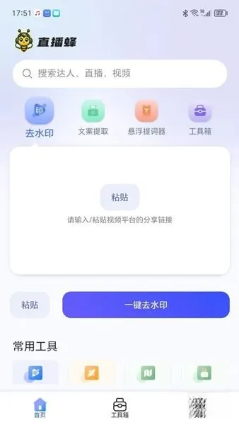 直播蜂是一款面向短视频创作者的综合性创作工具,集成了视频文案提取、去水印、悬浮提词器、违禁词检测、批量处理等多种实用功能。它借助智能化技术简化创作流程,降低创作门槛,有效提升内容生产效率,覆盖从素材获取到成品发布的全流程需求,为用户带来更优质的使用体验。