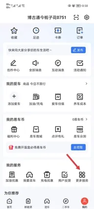 1、打开易车,点击“我的”-“更多服务”。