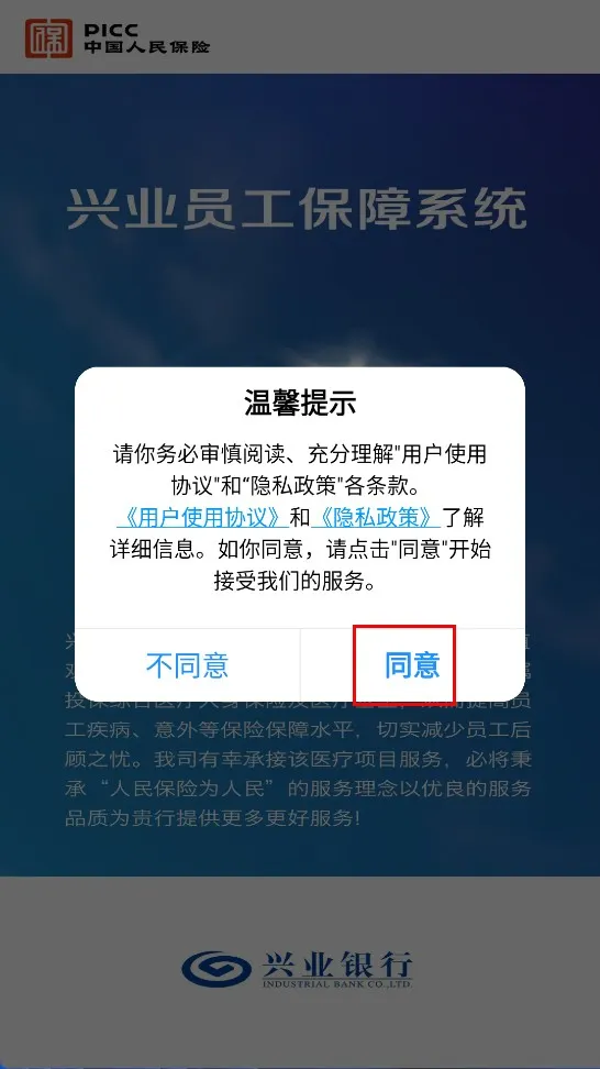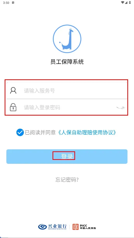 1、点击【同意】功能按钮,即可进入员工保障系统的登录页面。